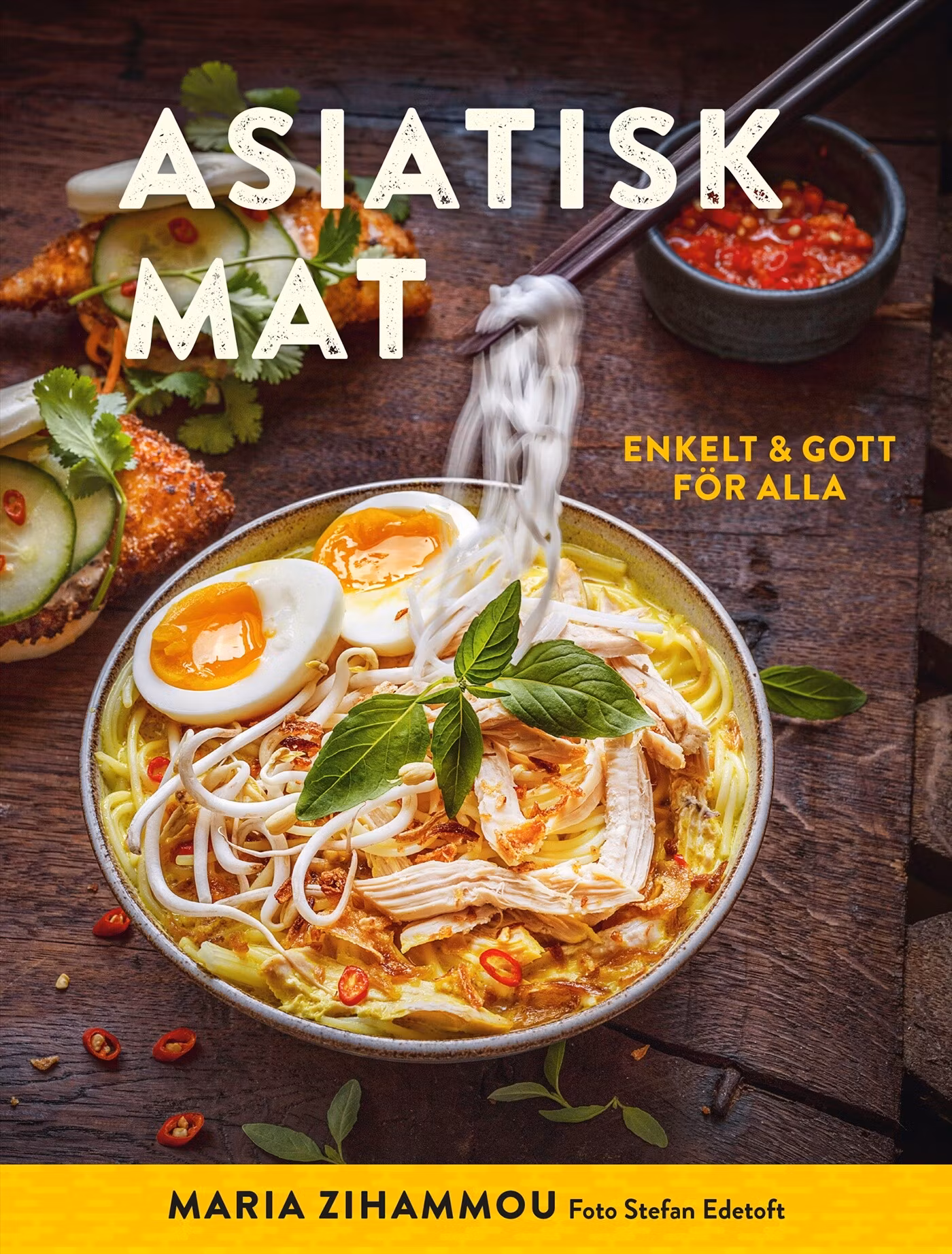 Här samlas allt det bästa från det asiatiska köket! Nudlar, fried rice, smakrik buljong och soppa, krispiga snacks, dressingar, heta rätter och värmande wok. Det krävs inga avancerade kunskaper eller krångliga ingredienser – det här är asiatisk mat som alla kan laga. Överraska med en mustig nudelsoppa, fräscha vårrullar, sötsur kyckling, pad thai eller vietnamesiska köttbullar. Med tips på hur man gör egen buljong, kokar det perfekta riset och sätter smakbalansen perfekt. Allt du behöver för att lyckas i det asiatiska köket. Svenska råvaror med asiatiska smaker gav Asiatisk Mat av Maria Zihammou Gourmand Awards pris som bästa asiatiska kokboken i världen 2023. 27 maj samlades en internationell kulinarisk elit i Umeå för att utse vinnarna i årets upplaga av Gourmand Awards. Asiatisk Mat vann pris som bästa asiatisk kokbok i världen. – Jag har matlagningen i mitt DNA. Och älskar att upptäcka nya dofter och smaker. I mitt lilla kök i Majorna i Göteborg växer rätterna fram och familjen är min testgrupp. I den vinnande boken låter jag Asiens smaker, kultur och mattraditioner möta nordiska råvaror som skapar en ny och spännande matpalett. Den internationella juryn föll för färgen, formen och den nordiska enkelheten och jag är naturligtvis överlycklig, säger Maria Zihammou.